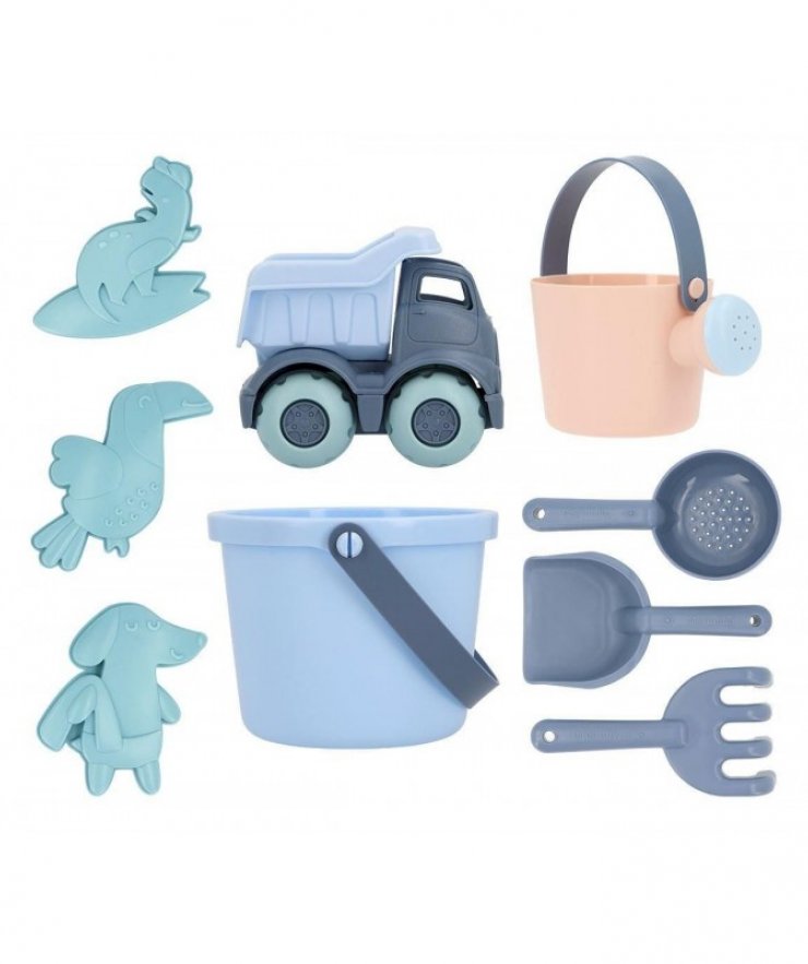 Περιλαμβάνει κουβαδάκι, εργαλεία για σκάψιμο, ποτιστήρι και φορτηγάκι.