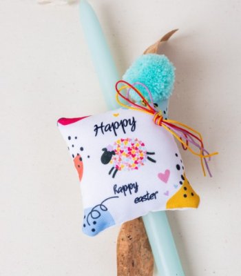 Λαμπάδα με μαξιλάρι φυλαχτό,προβατάκι με καρδιές (Fly a kite)