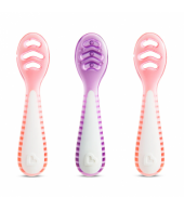 Caution: Wash and inspect before use. To avoid stains, wash immediately after each use. Wash on the top rack of the dishwasher. Do not sterilize in the microwave, boil, or steam. Discard and replace at the first sign of weakness or damage. Always check the temperature before feeding. Do not allow your child to walk or run while holding the spoon. Do not allow your child to play with, bite, or chew on the spoon. Do not leave your child unattended while using the spoon. Discard all packaging components before use.