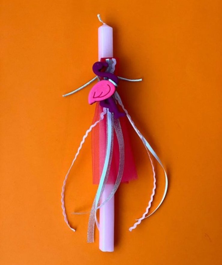 Pastel pink blue Easter candle with a metal carrot decoration (Fly a Kite)